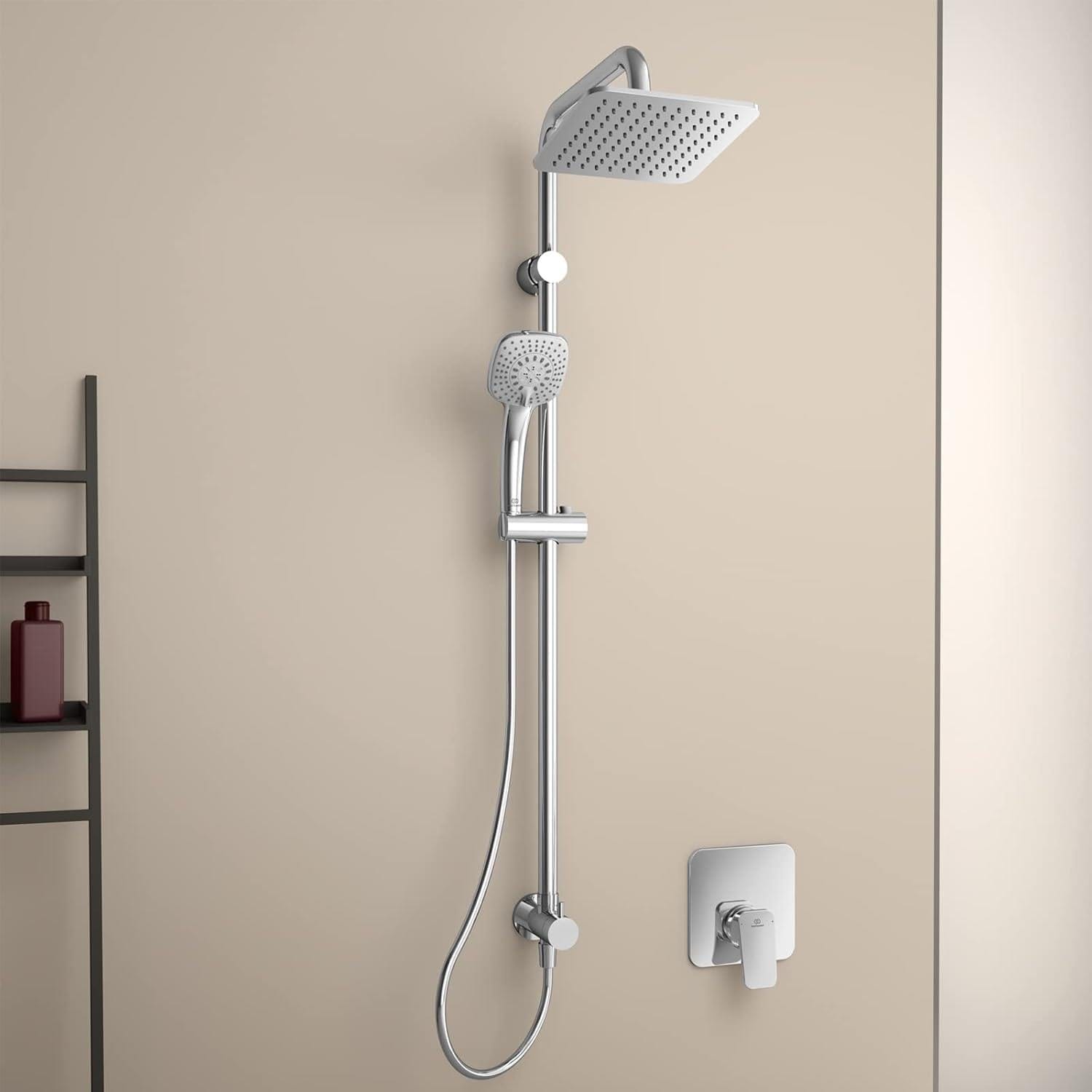 Ideal Standard IdealRain Riser Rail with Diverter, Square Showerhead and Handset in Chrome