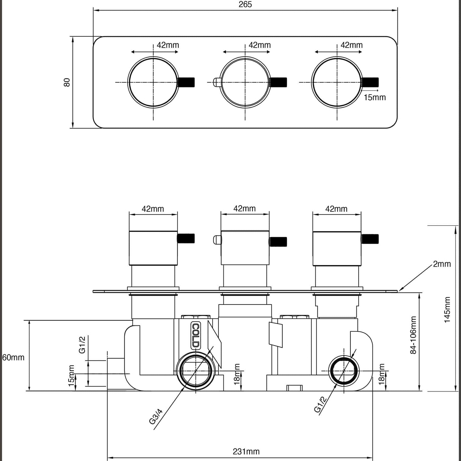 Imex Ravine 3 Outlet, 3 Handle Concealed Thermostatic Shower Valve