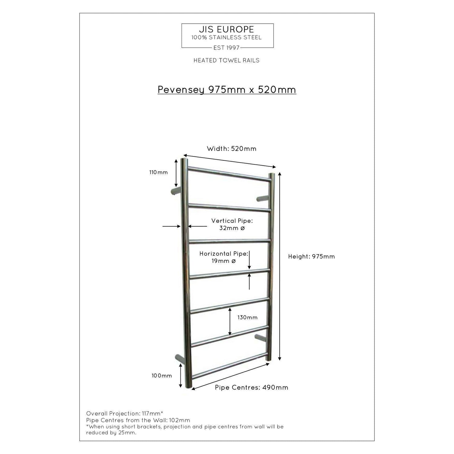 JIS Sussex Pevensey Vertical Stainless Steel Heated Towel Rail