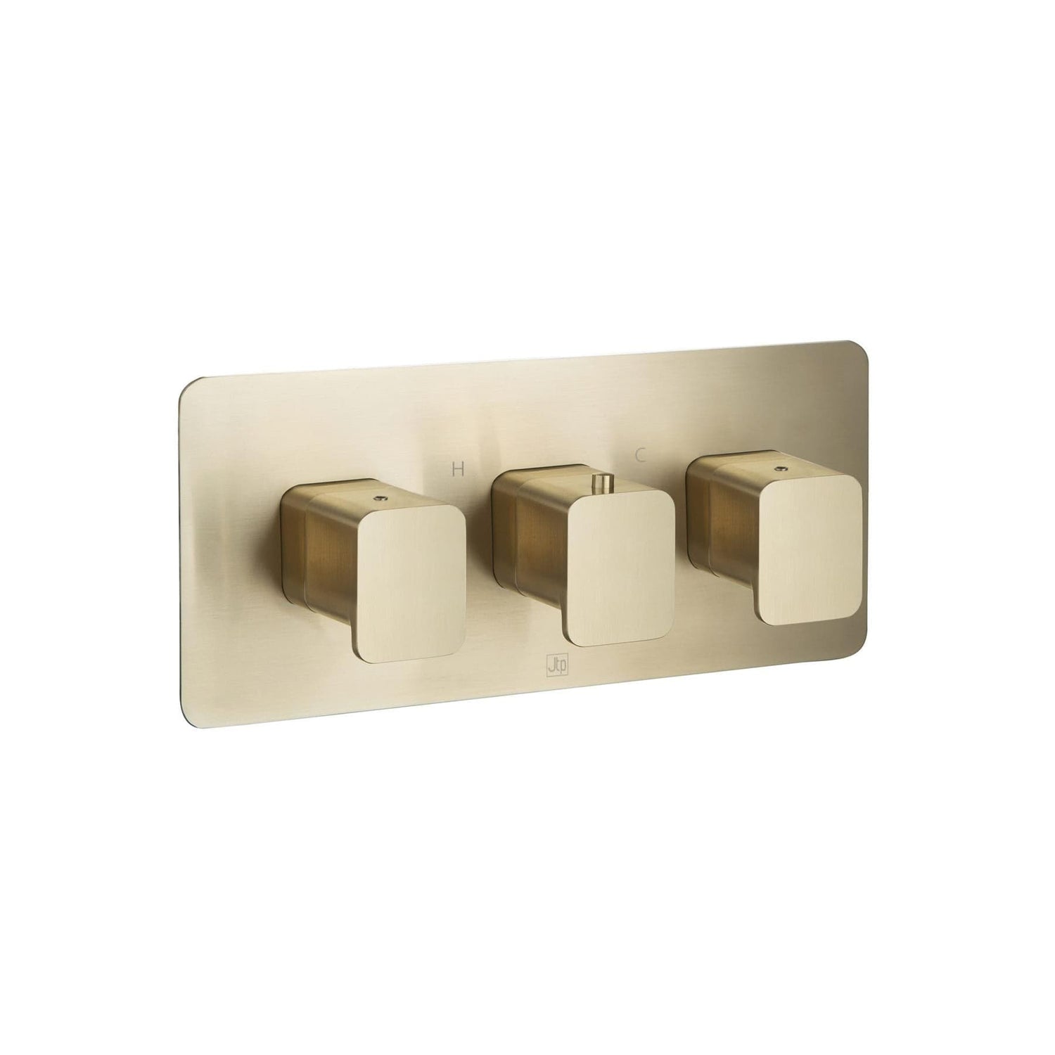 JTP HIX 2 Outlet, 3 Handle Horizontal Thermostatic Concealed Shower Valve