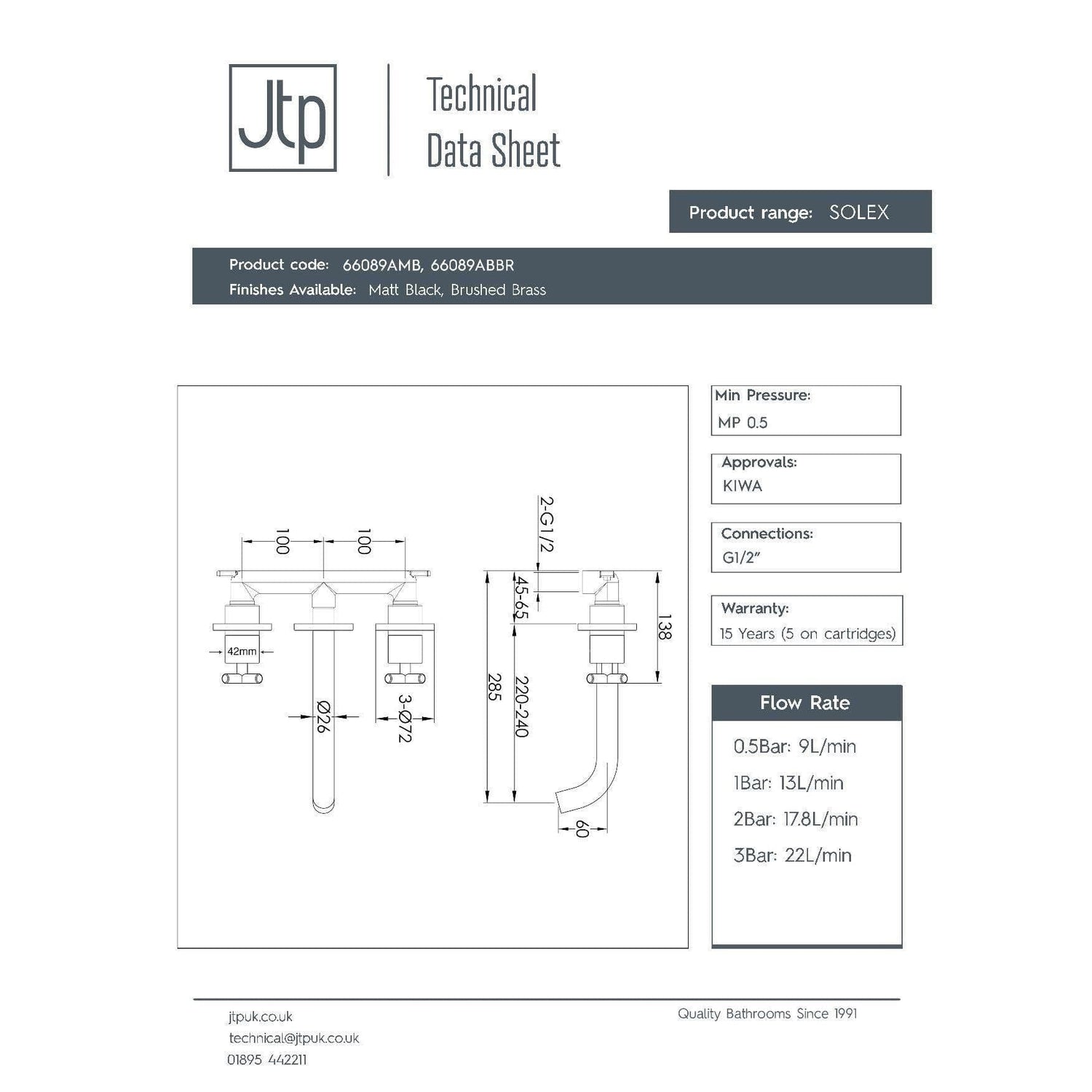JTP Solex 3 Hole Wall Mounted Basin Mixer Tap