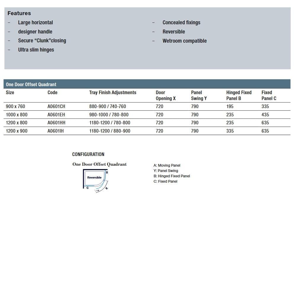 The Series 8 Frameless 1 Door Offset Quadrant Shower Enclosure is a true premium enclosure, combining striking design, superior materials and exceptional performance for bathrooms where only the best will do.
