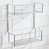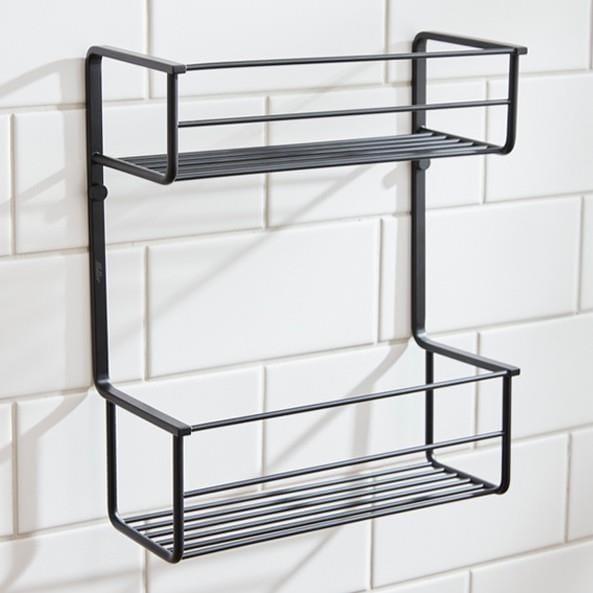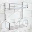 This two tier shower shelf is manufactured in brass, and available in a classic chrome finish or matt black finish.