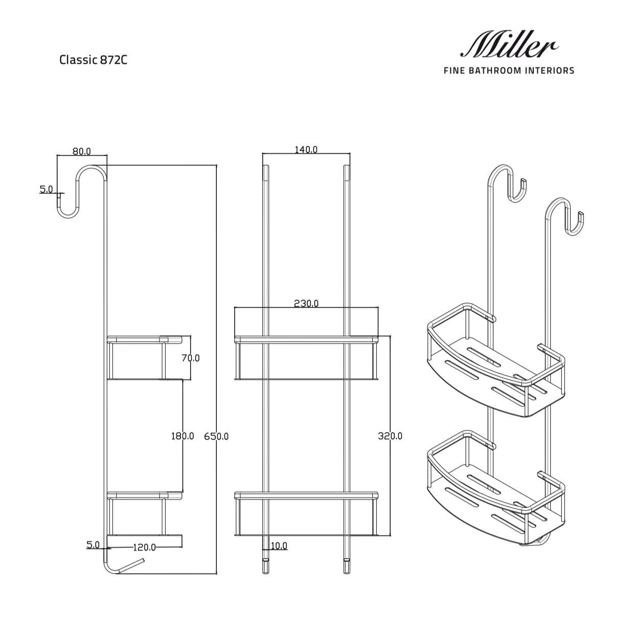 Shower caddy basket, manufactured from high quality brass and available in a classic chrome finish. Hooks over shower door, no fixing needed.