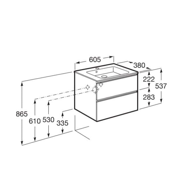 Roca The Gap Compact Wall Mounted 600mm Two Drawer Vanity Unit with Basin