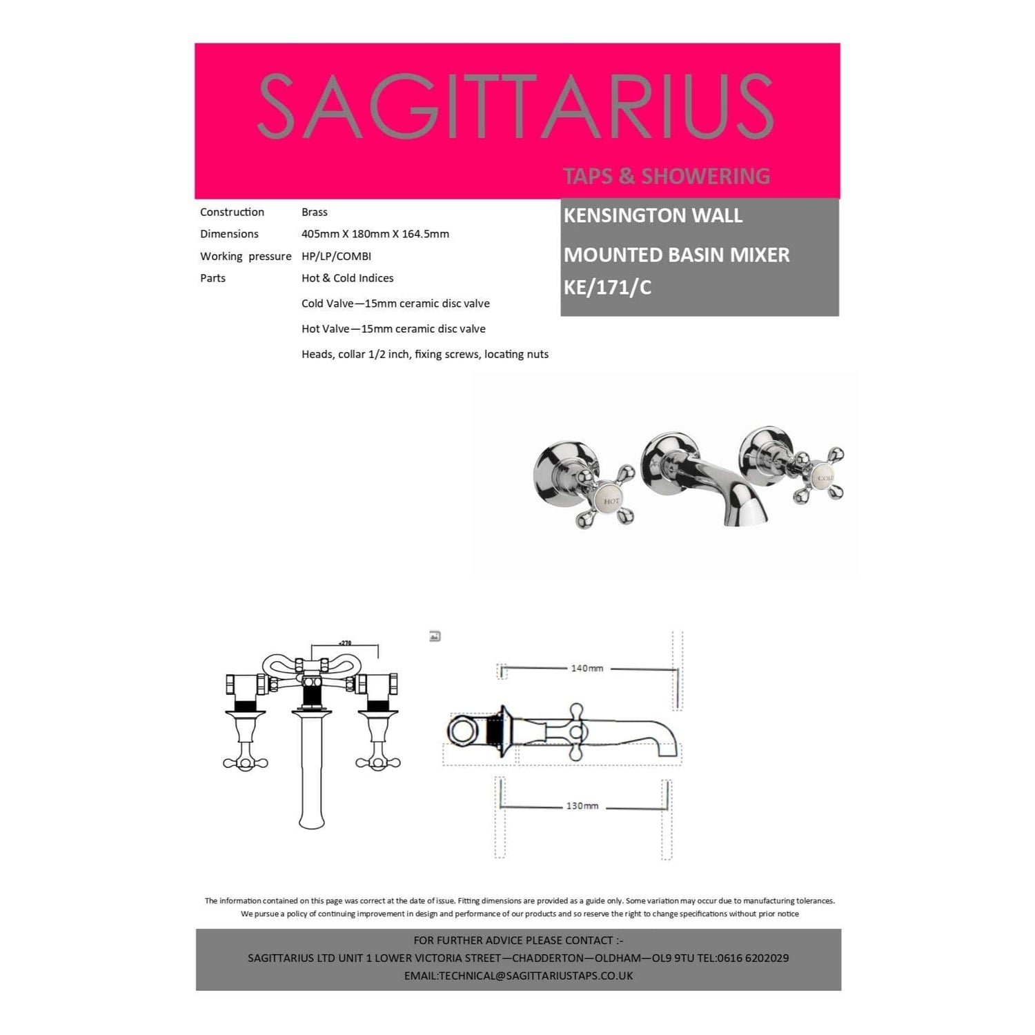 Sagittarius Kensington 3 Hole Wall Mounted Basin Mixer Tap in Chrome/White