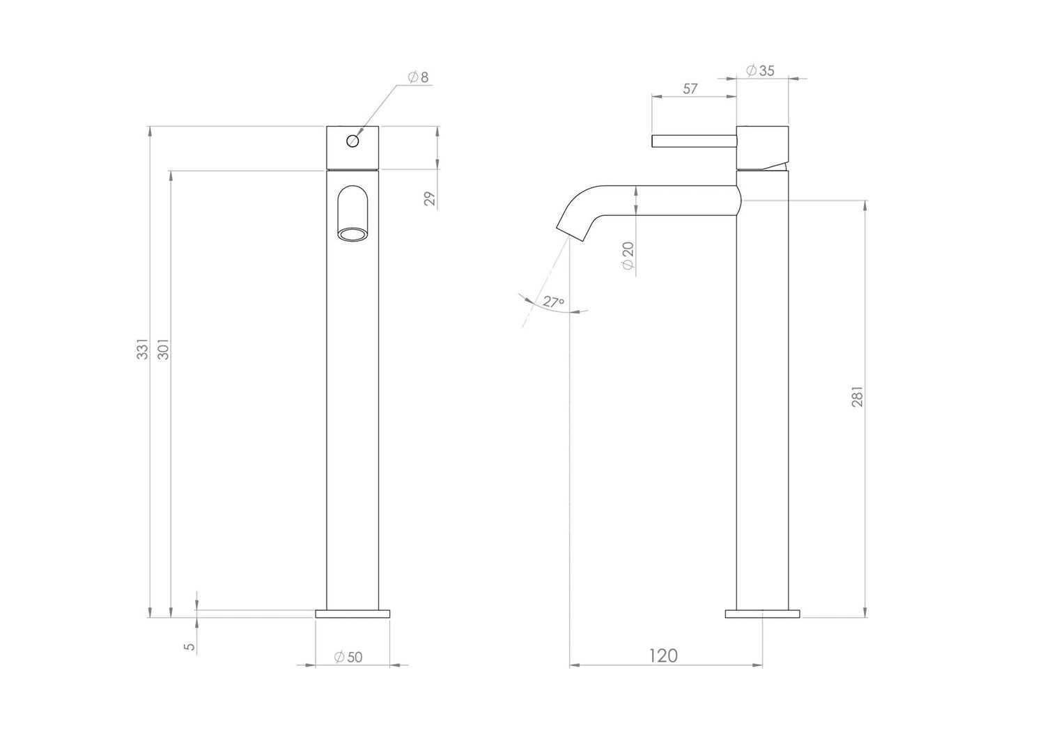 Pair the tall basin mixer with a sit on basin and countertop.
