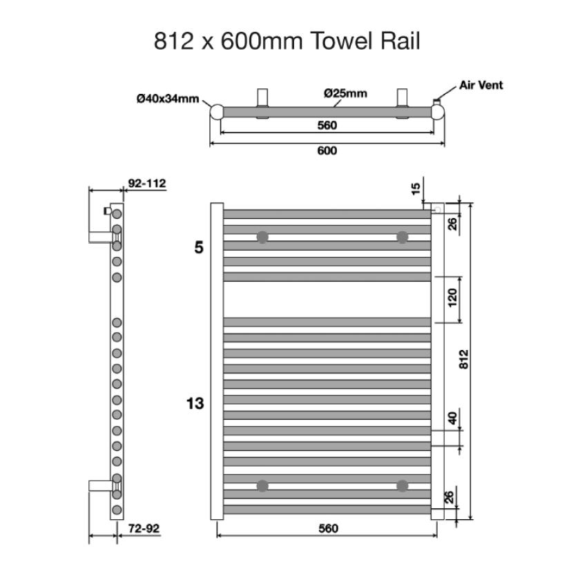 - Exceptional heat output to warm towels and enhance bathroom comfort
