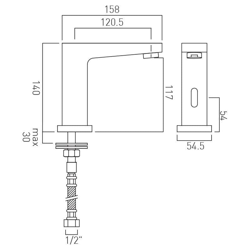 Sensor tap with Infrared technology, finished in a high-shine polished chrome. Mains or AA battery operated. Waste available separately.