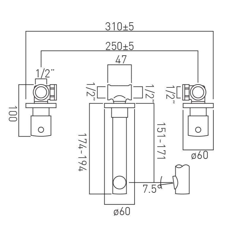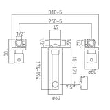 3 hole wall mounted basin mixer tap, finished in a high-shine polished chrome.