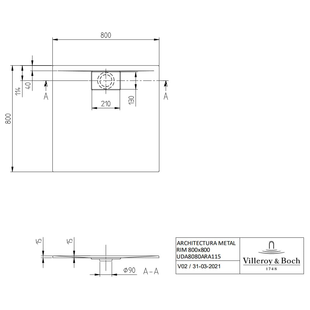 Villeroy & Boch Architectura Metalrim Square Shower Tray in Alpin White