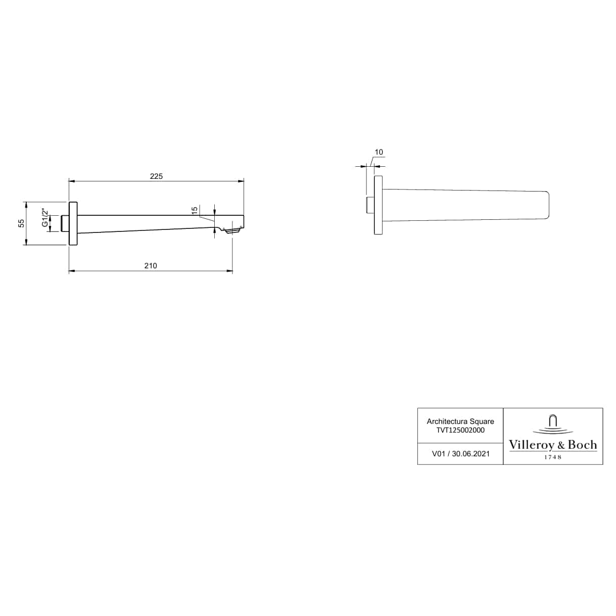 Villeroy & Boch Architectura Square Wall Mounted Bath Spout