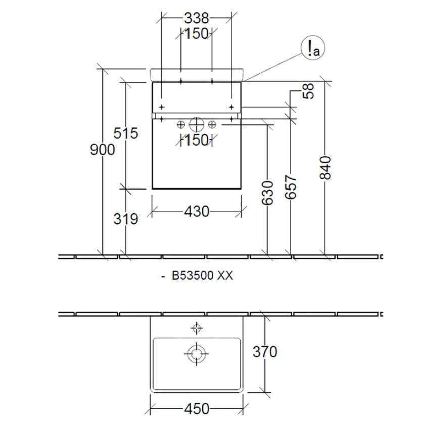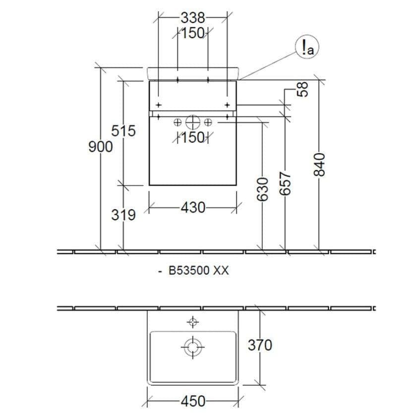 Villeroy & Boch Arto Wall Mounted 450mm One Drawer Vanity Unit with Basin