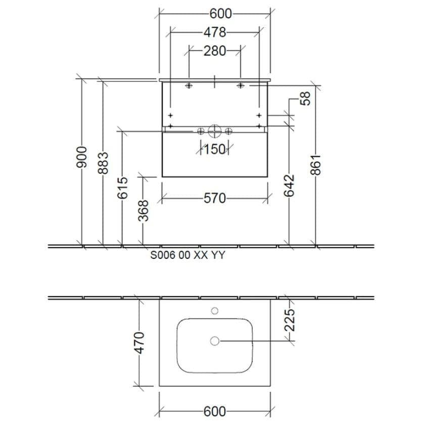 Villeroy & Boch Arto Wall Mounted 600mm Two Drawer Vanity Unit with Basin