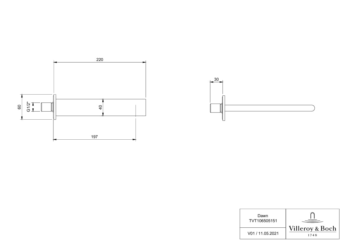 The elegant design of the Dawn series from VILLEROY & BOCH will add modern highlights in a contemporary bathroom. This wall mounted bath spout features a minimalist shape with delicate lines and will coordinate perfectly and stylishly with the other items in the Villeroy & Boch bathroom range.