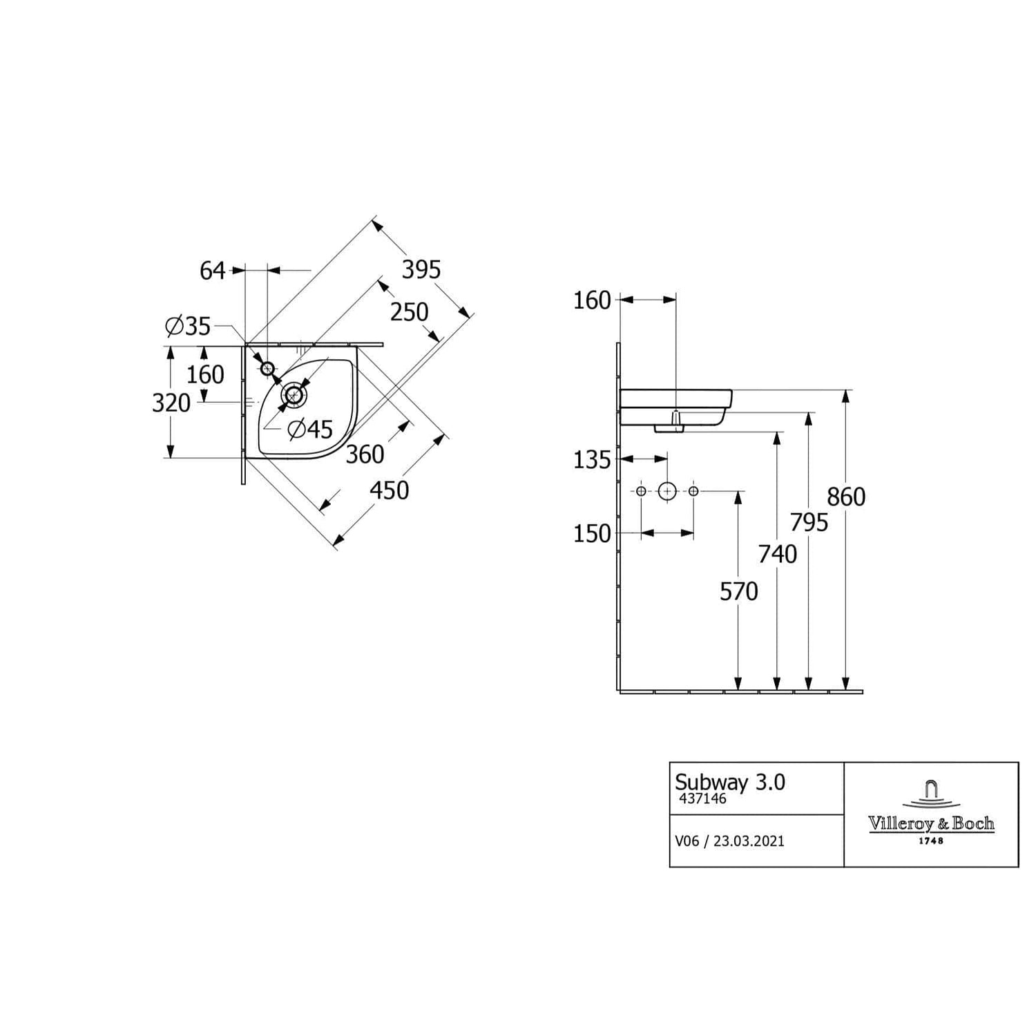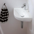 Subway 3.0 cloakroom corner basin, available in white alpin. Small, but perfectly formed, designed for areas where space is at a premium.