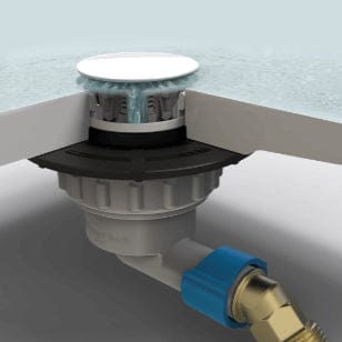 Strategically placed for clean aesthetics and efficient water flow. Matching outlet cover. -