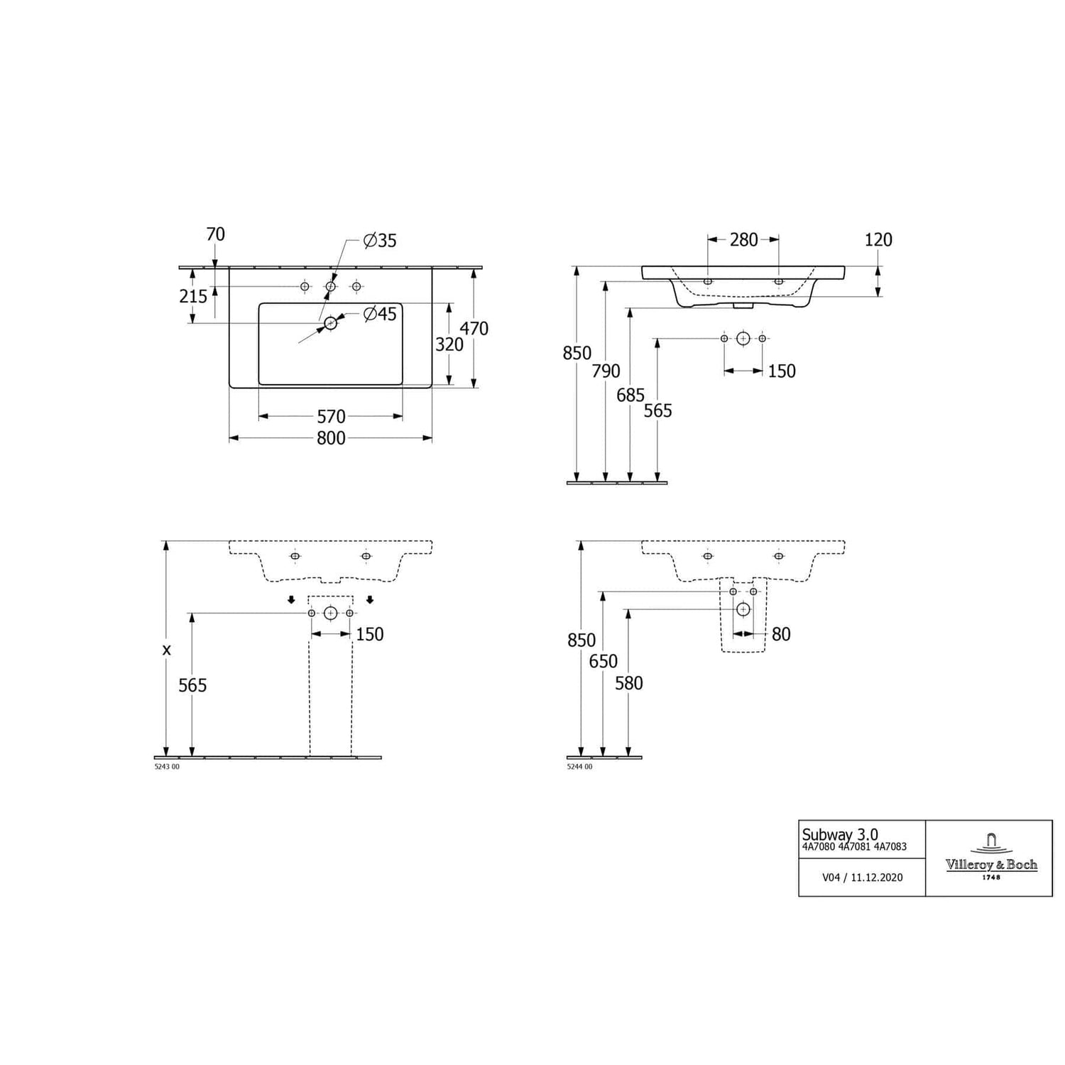 Villeroy & Boch Subway 3.0 Wall Hung 800mm Two Drawer Vanity Unit with Basin