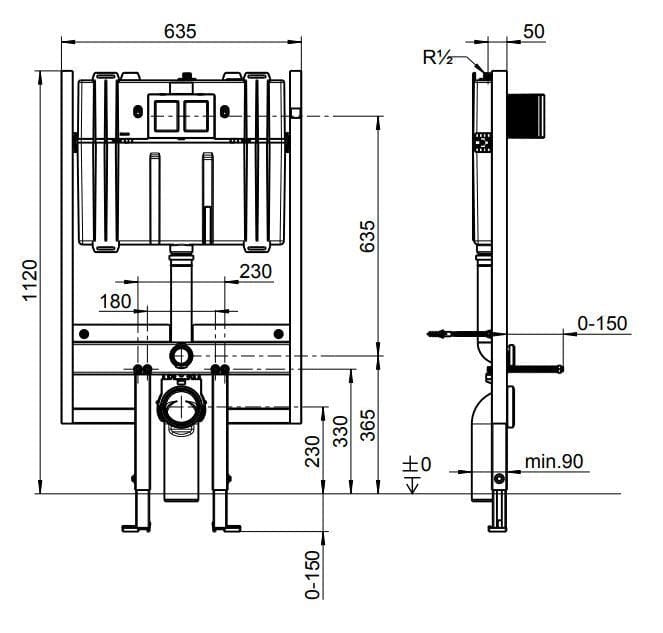 Villeroy & Boch VICONNECT Compact Wall Mounted Cistern Frame - 1120mm x 635mm