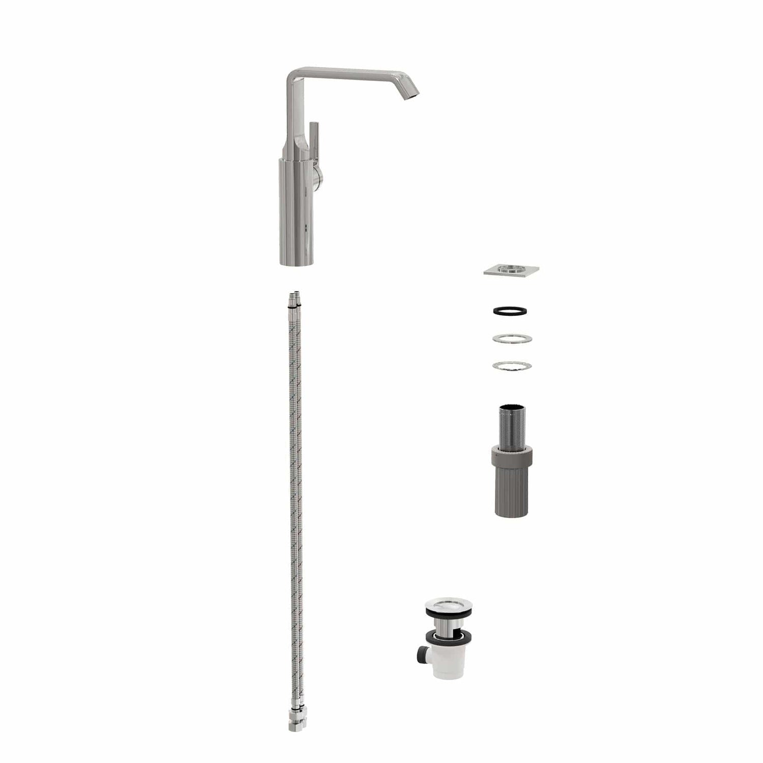 Available in chrome, gloss black, soft copper and soft gold finishes, this deck mounted Tall Basin Mixer Tap with Side Lever allows for precise water flow and temperature control.
